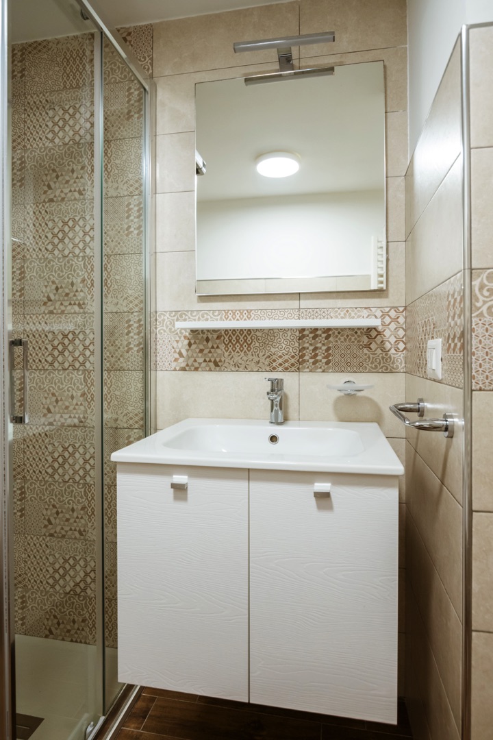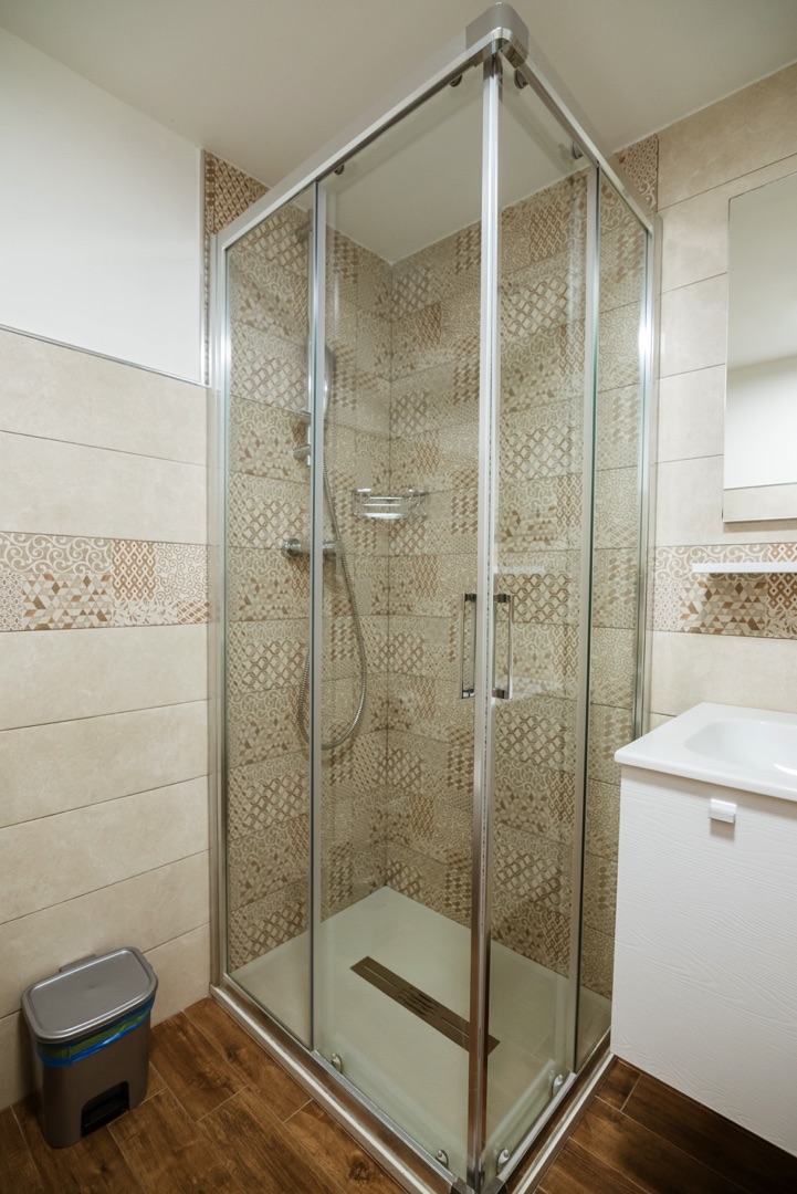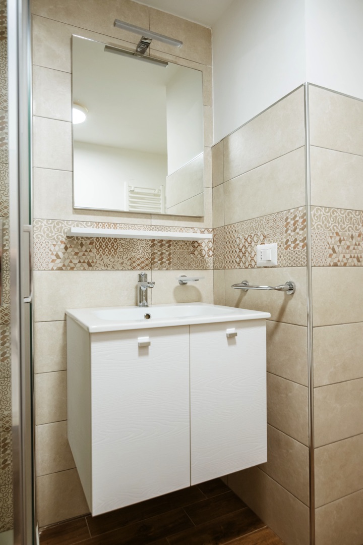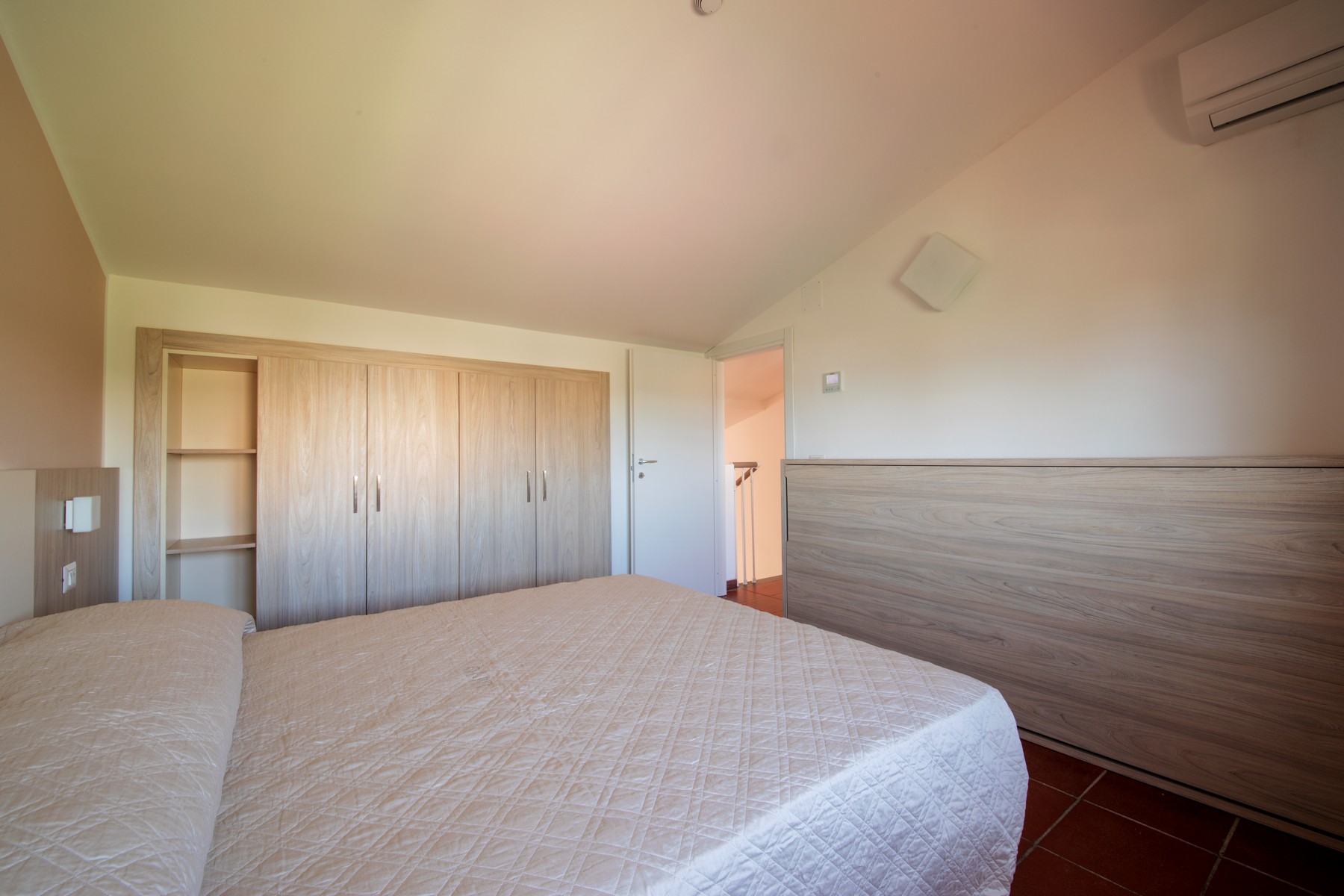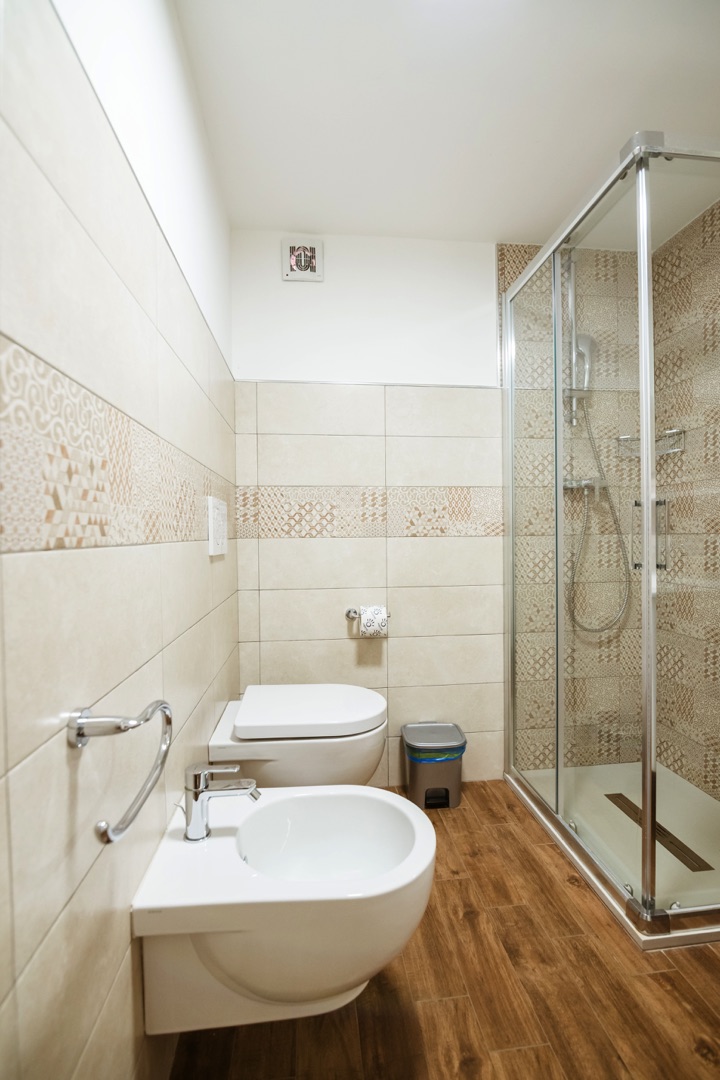 L’appartamento è composto su un livello da una camera con due letti singoli e un piccolo bagno (lavabo, cabina doccia e wc) e soggiorno con divano letto matrimoniale e angolo cottura con piano a induzione.Al secondo livello una camera matrimoniale + un letto a scomparsa e un secondo bagno completo di tutti i servizi (lavabo, cabina doccia, bidet e wc).