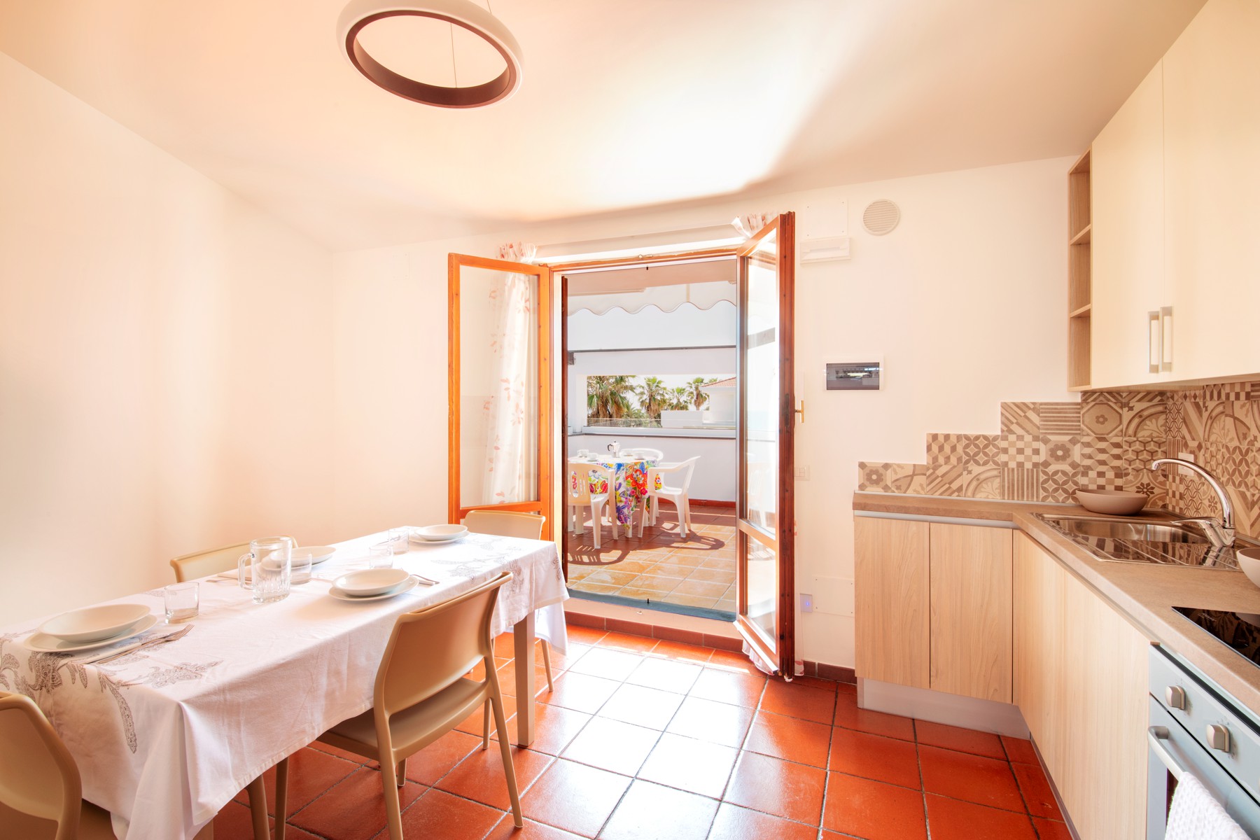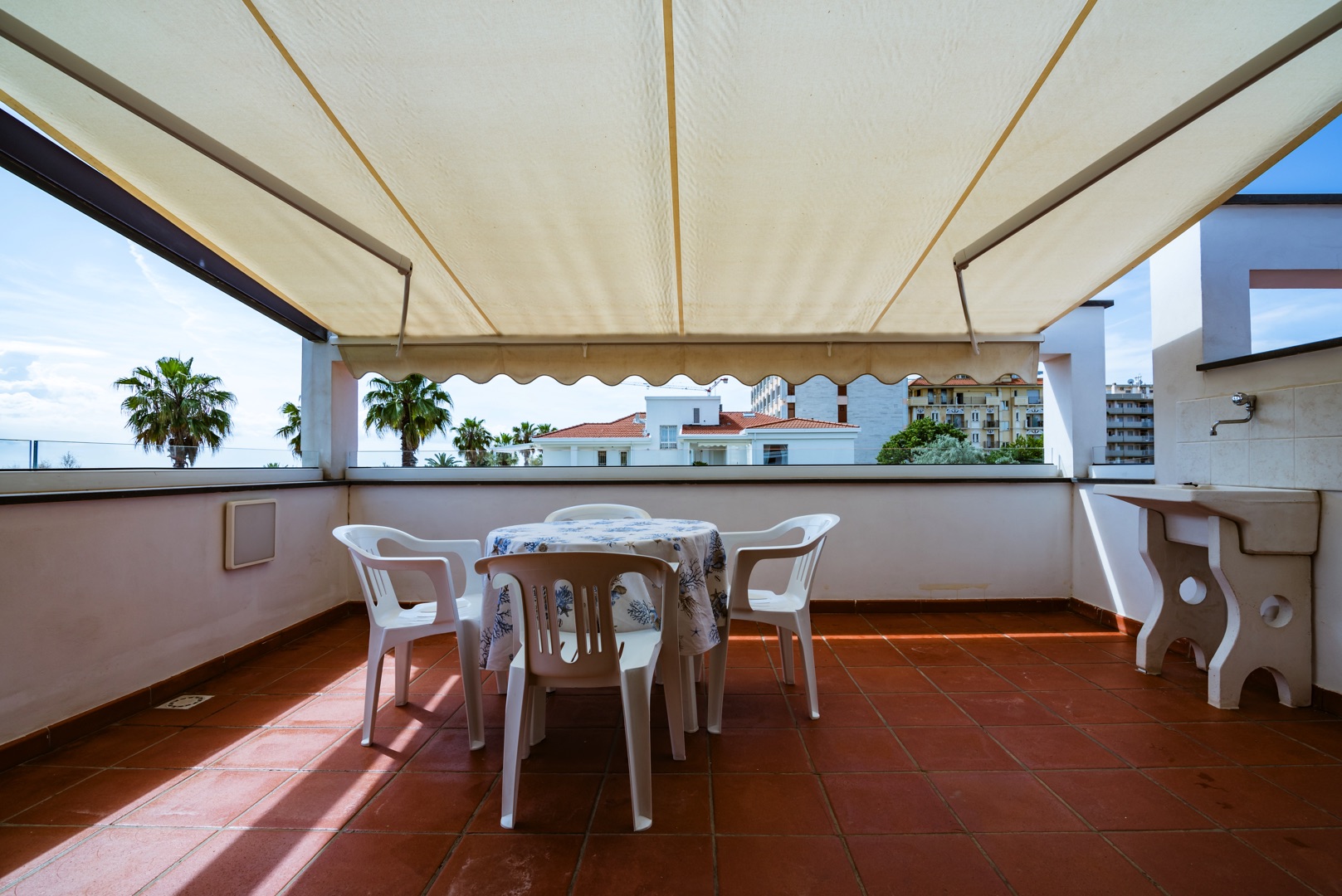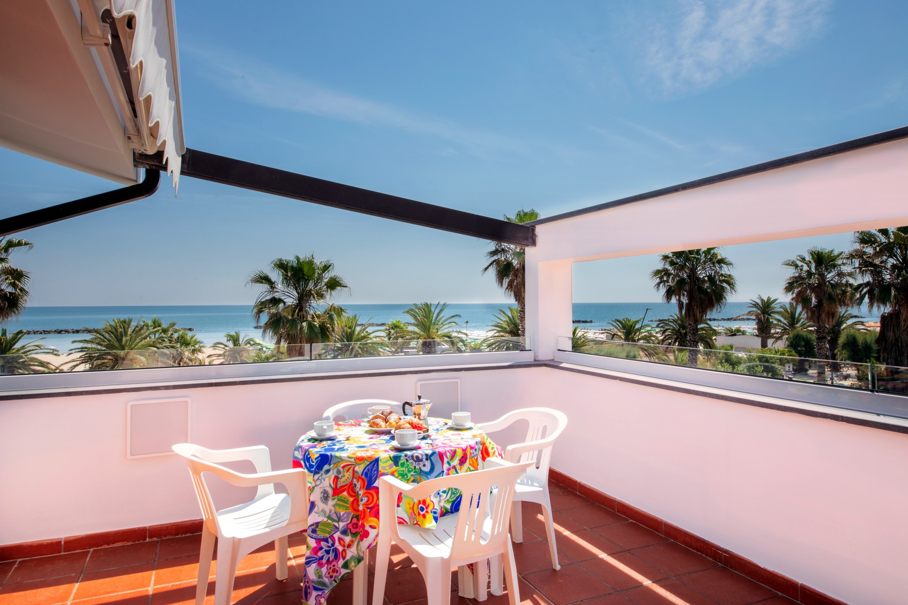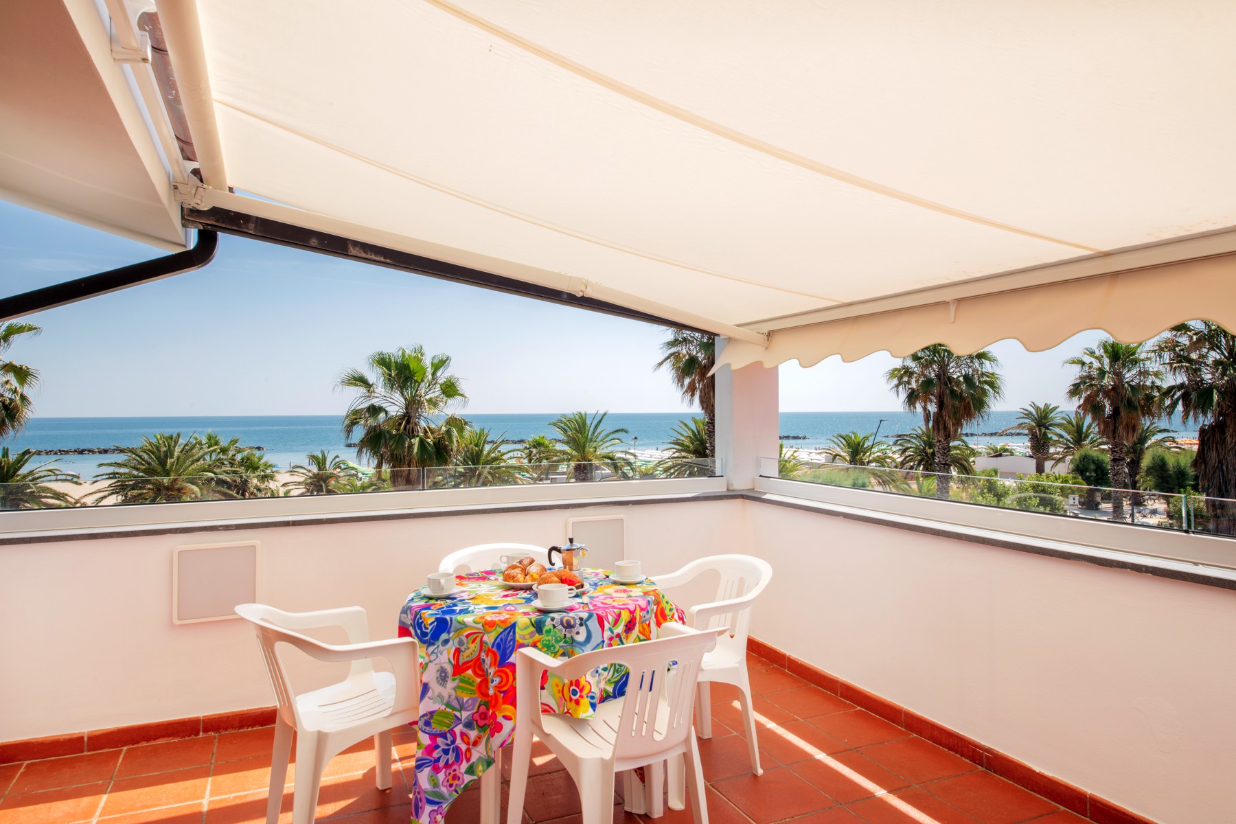 L'appartamento è dotato di aria condizionata, TV, cassaforte, lavatrice e Wi-Fi. L’ampio balcone dalla copertura con tenda da sole con una bella vista mare laterale.