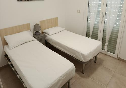 Апартаменты расположены в 50 метрах от пляжа, в центральной части города. Планировка следующая: спальня с двуспальной кроватью, спальня с двумя кроватями, гостиная с двуспальным диваном-кроватью и мини-кухней, ванная комната с душем, терраса. Первый этаж приподнятый. Телевизор, стиральная машина, посудомоечная машина, утюг и гладильная доска, фен и Wi-Fi. Кондиционер предоставляется по запросу (за дополнительную плату 70 евро в неделю), а также парковочное место предоставляется при наличии свободных мест (за дополнительную плату 30 евро в неделю).