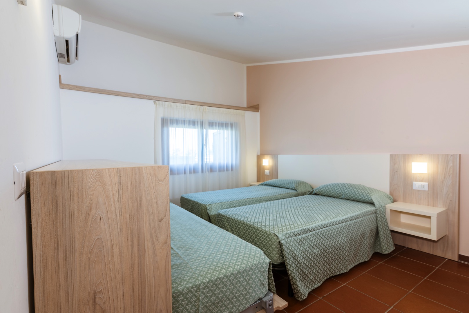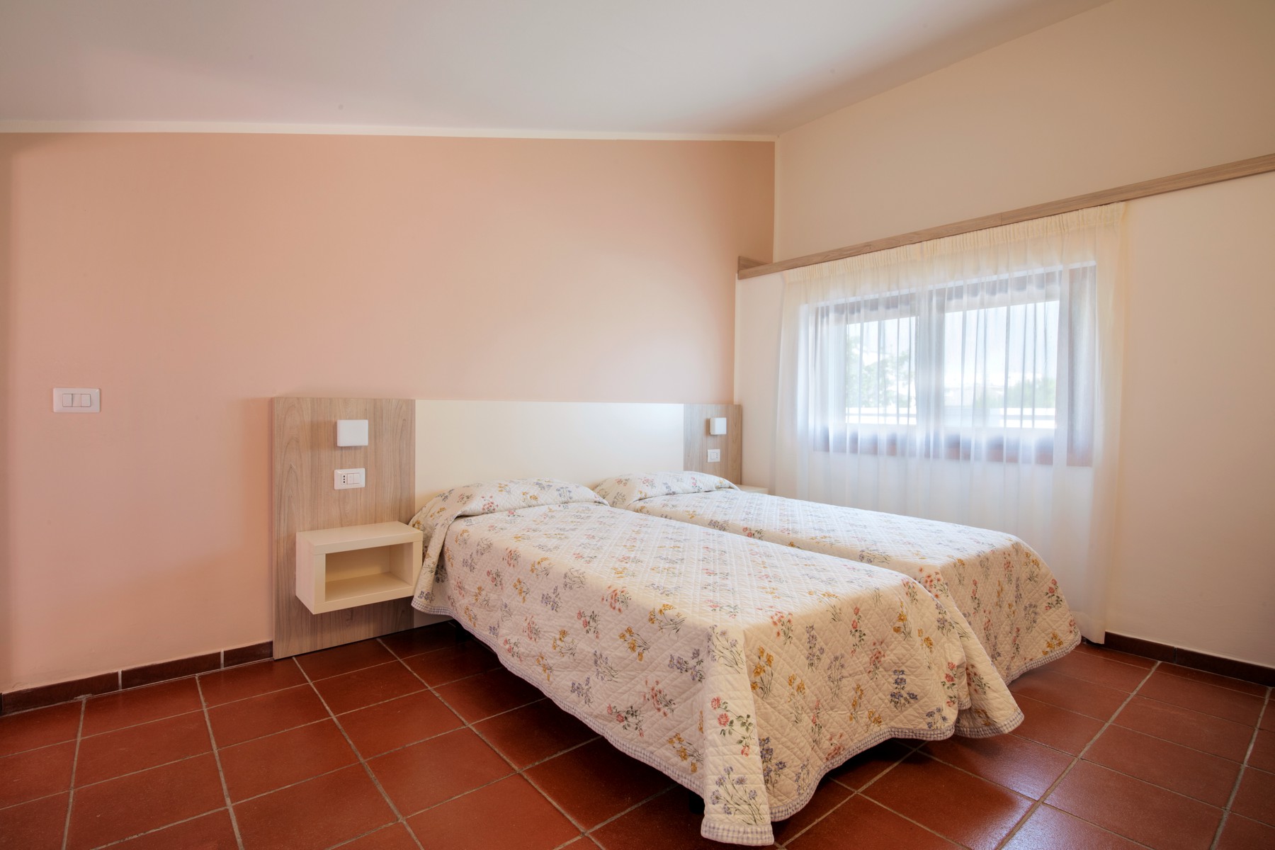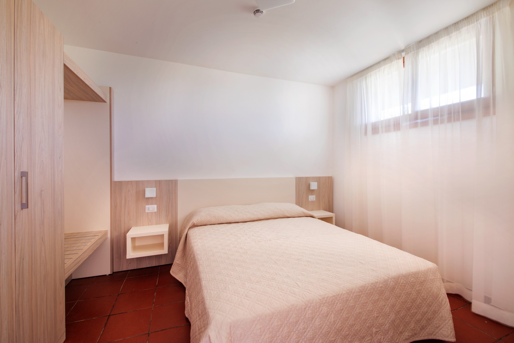 Апартаменты состоят из спальни с двумя односпальными кроватями и небольшой ванной комнаты (раковина, душ и туалет) на нижнем этаже, а также гостиной с двуспальным диваном-кроватью и мини-кухней с индукционной плитой. На верхнем этаже находится спальня с двуспальной кроватью и 1 раскладной кроватью, а также вторая ванная комната со всеми удобствами (раковина, душ, биде и туалет). Апартаменты оборудованы кондиционером, телевизором, сейфом, стиральной машиной и Wi-Fi. Большая терраса с прекрасным видом на море и навесом оборудована столом и стульями.
